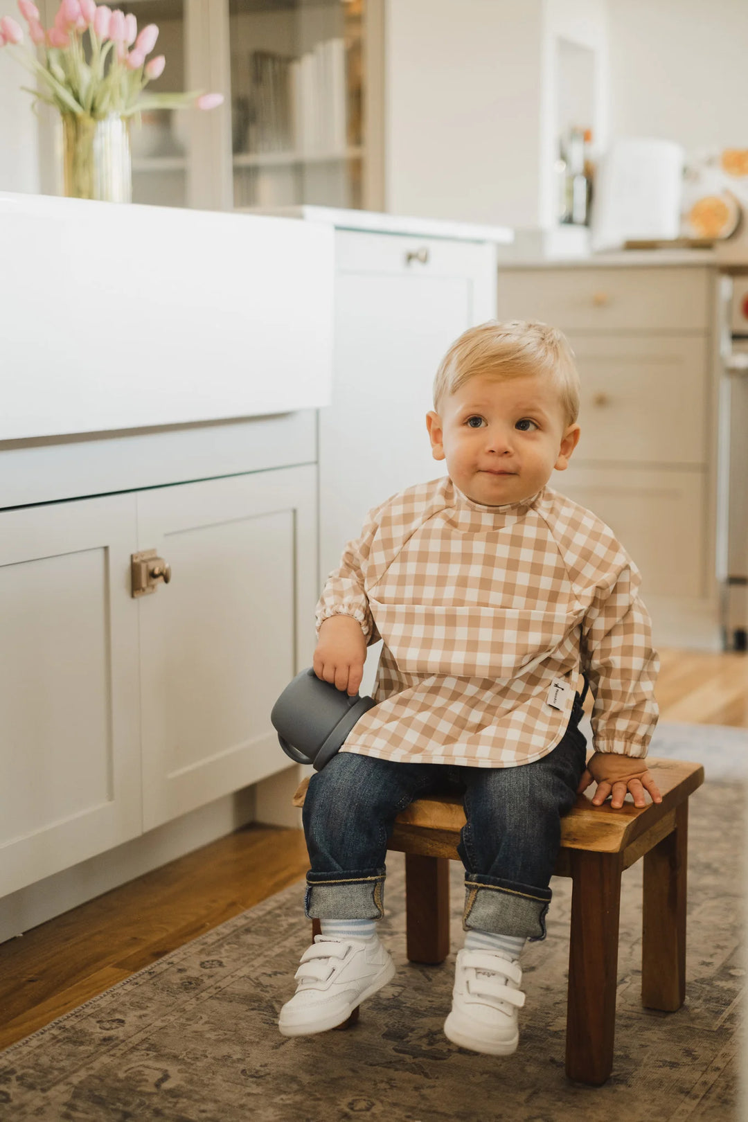 Bavette à manches longues avec pochette intégrée - Vichy caramel