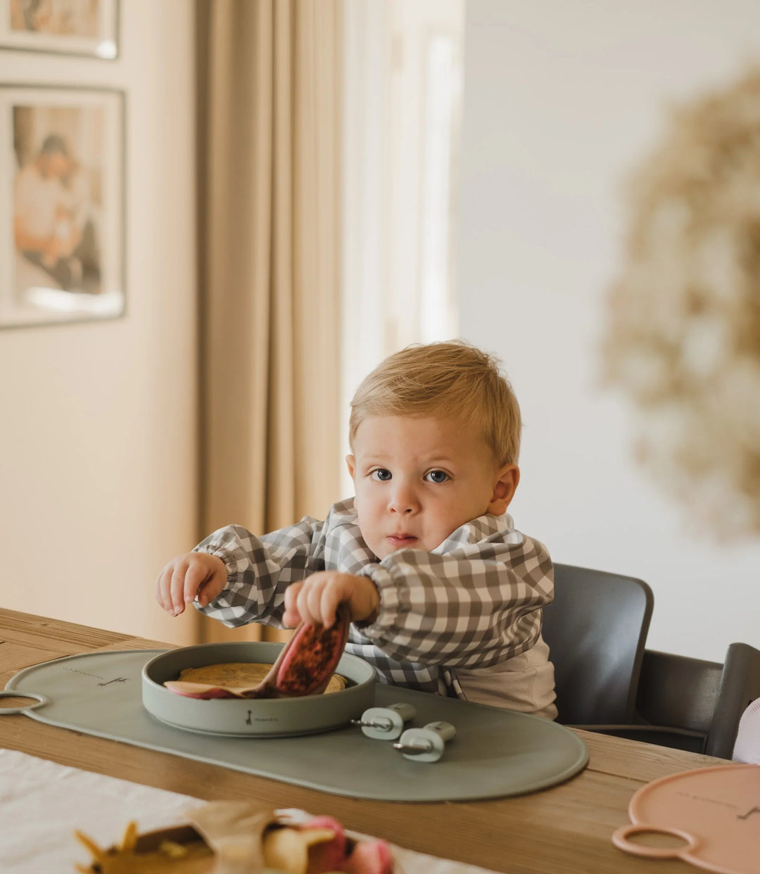 Bavette à manches longues avec pochette intégrée - Vichy sauge