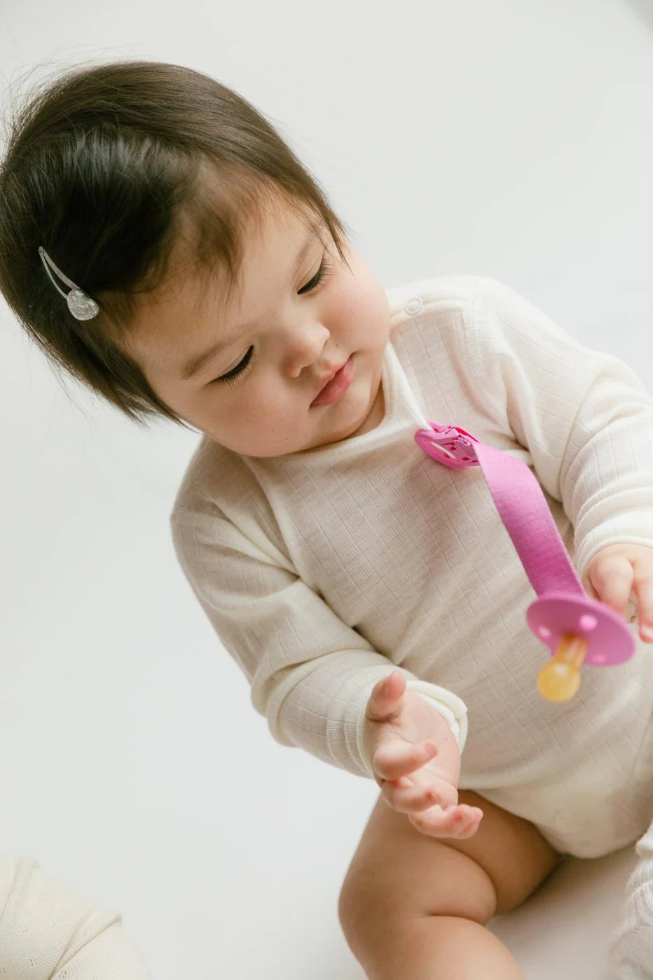 Conçu pour garder la sucette à portée de main et éviter qu’elle ne tombe au sol, il est doté d’un mécanisme d’attache pratique utilisable d’une seule main et d’un anneau flexible en silicone qui se fixe solidement à toutes les sucettes BIBS.