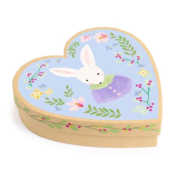 Cette jolie boîte en forme de cœur décorée d'un petit lapin tout mignon cache 3 adorables bracelets.
