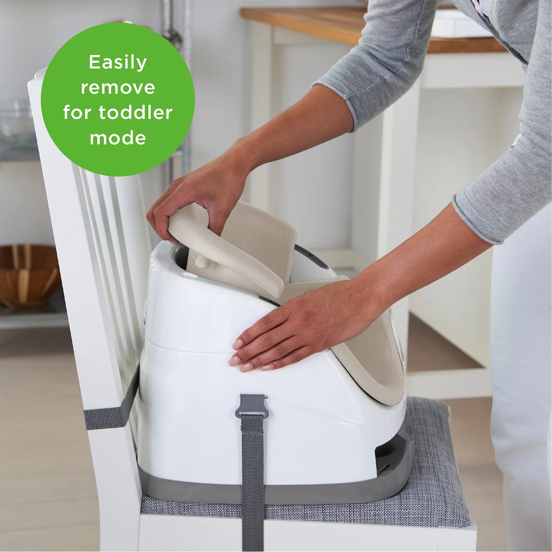 Les repas sont un moment important en famille. Profitez de plus de rires et de conversations, y compris du langage bébé, en offrant à votre tout-petit une place à table grâce à ce siège d'appoint. Le siège 2 en 1 Ingenuity Baby Base se fixe facilement aux chaises de salle à manger pour que votre bébé puisse s'asseoir plus haut et voir plus loin pendant les repas en famille. Ce siège d'appoint portable est aussi pratique à table qu'à même le sol pendant les jeux. Le plateau amovible offre à votre bébé une table parfaitement dimensionnée, permettant ainsi à ses en-cas et jouets d'être facilement à portée de main. Lorsqu'il n'est pas utilisé, le plateau se range facilement sous le rehausseur. À mesure que votre bébé grandit, vous pouvez retirer le coussin en mousse et transformer le rehausseur en siège enfant. Pour tous les repas entre les repas, vous pouvez compter sur le siège lavable et le plateau lavable au lave-vaisselle : vous aurez plus de temps pour discuter en famille et moins pour nettoyer la cuisine.