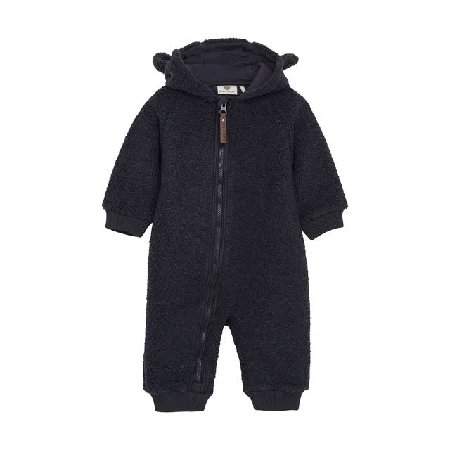 Combinaison adorable de la marque EN FANT, réalisée en matière douce type teddy. La combinaison est dotée d’une capuche pratique avec de petites oreilles mignonnes et d’une fermeture éclair sur toute la longueur qui descend jusqu’à une jambe, ce qui facilite l’enfilage et le retrait.