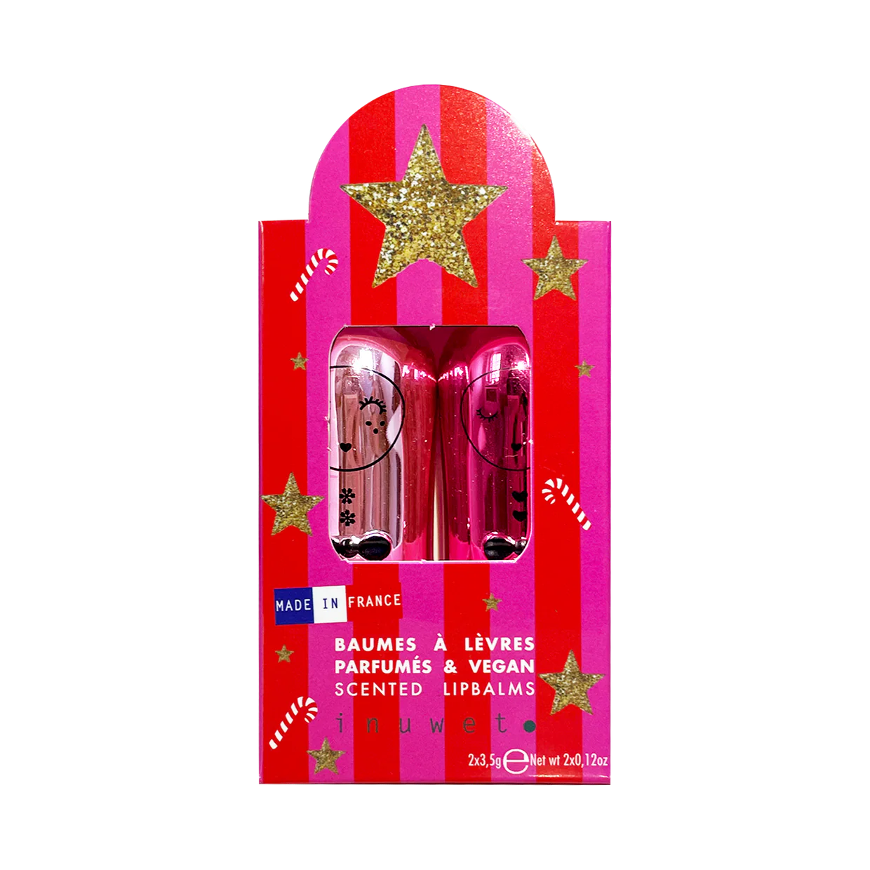 Composé de deux baumes à lèvres métal rouge et rose, nourrissants et parfumés à la framboise et pomme d'amour pour des lèvres douces, nourries et délicatement parfumées. Riches en beurre de karité, huile de macadamia et cire de carnauba BIO, ils nourrissent, réparent, adoucissent et protègent vos lèvres pour un confort absolu.
