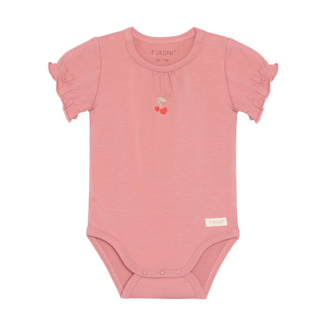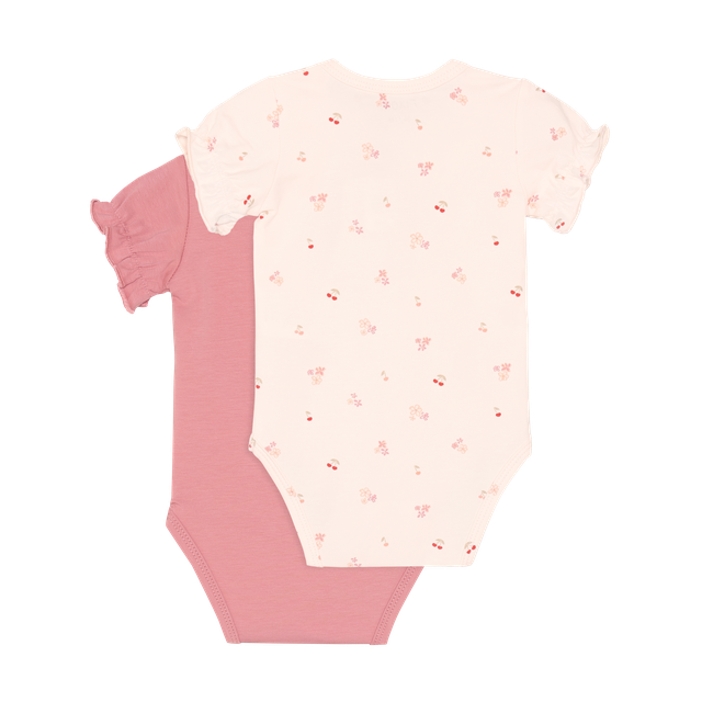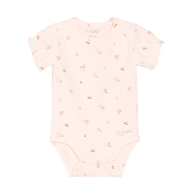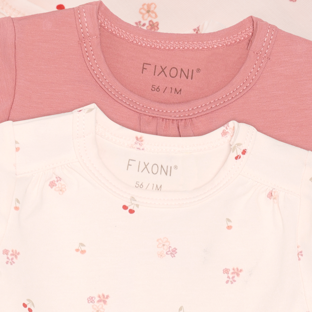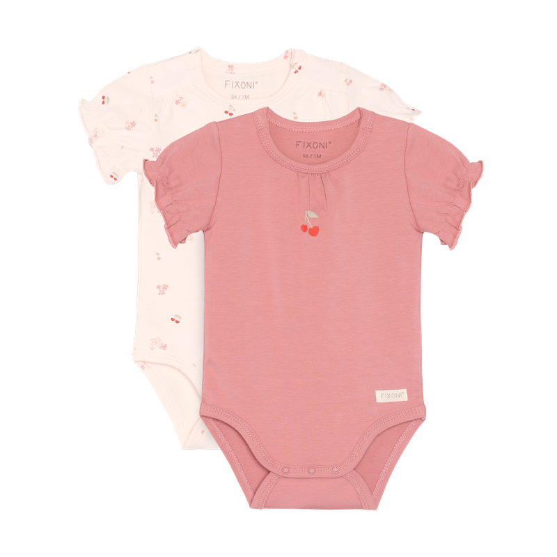 Cache-couche à manches courtes de la marque FIXONI. Vendu en lot de 2 : un cache-couche avec imprimé intégral et un cache-couche uni avec un motif imprimé sur le devant, au niveau de la poitrine.