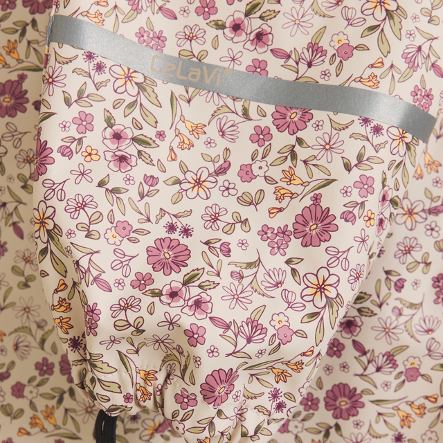 L’ensemble de pluie CeLaVi est doté d’une capuche amovible fixée au col par des boutons-pression. Il se ferme à l’avant par une fermeture éclair imperméable. L’ouverture de la capuche, les poignets et la taille sont élastiqués pour un meilleur ajustement.