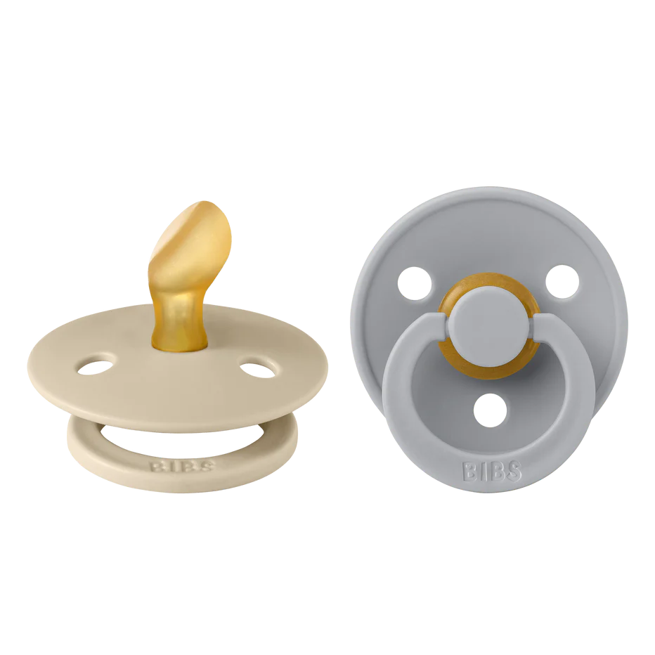 BIBS Colour est la sucette originale de la marque, présente sur le marché depuis plus de 40 ans. Elle se distingue par son bouclier rond emblématique avec trois trous de ventilation et son anneau rond gravé BIBS.