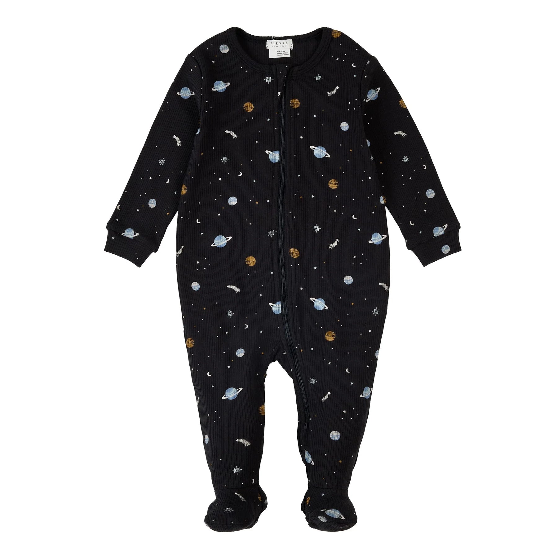 Laissez-les s'endormir parmi les étoiles dans cette dormeuse ornée d'un imprimé de galaxie. Fabriquée en coton côtelé biologique ultra-doux, elle les garde bien au chaud et à l'aise pour un voyage toute la nuit jusqu'à la Lune et retour. Avec des pieds intégrés et des poignets côtelés, cette combinaison offre un ajustement confortable. Un pyjama assorti est également disponible (tailles 12 à 24 mois).