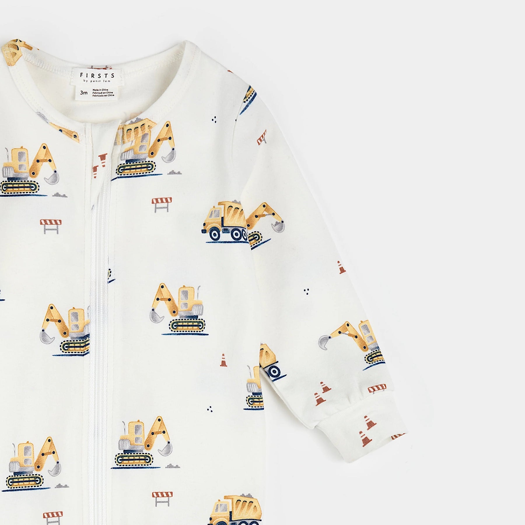 Préparant le terrain pour de grands rêves et de petites aventures, cette dormeuse à pieds ornée d'un imprimé de pelleteuses sur toute la surface est parfaite pour votre petit curieux. Conçue pour les parents et pour bébé, elle est fabriquée dans notre mélange ultra doux et très apprécié de coton biologique et de modal, et munie d'une fermeture éclair à double sens. Les pieds intégrés protègent ses petits orteils sur le chantier de construction de la maison et les manches à revers laissent ses mains libres pour empiler, construire et renverser ses jouets encore et encore.