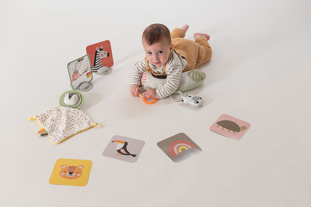 • Stimulation visuelle 0m+ - La vue en développement de votre bébé joue un rôle majeur dans le développement sensoriel. Au début, leur vision est principalement limitée à la remarque des zones de fort contraste et à la reconnaissance des visages de leurs parents. Au fil du temps, cela s'améliorera, permettant à bébé de voir le monde plus clairement.