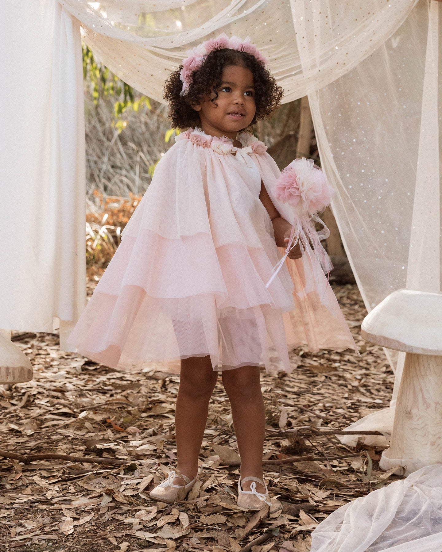 Notre serre-tête couronne à pompons et sa baguette assortie, ornés de tulle et de rubans métalliques, apportent une touche féérique aux déguisements et aux jeux.