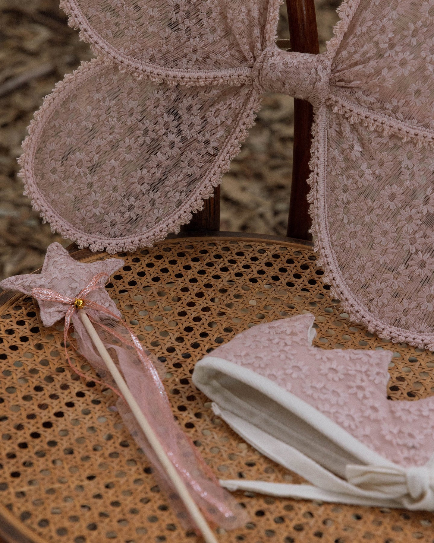 Aucune tenue de déguisement n’est complète sans une couronne et une baguette magique. La couronne est dotée de liens souples pour un ajustement confortable et réglable, tandis que la baguette étoile est fabriquée avec une tige en bois, ornée d’un grelot tintant et d’un ruban de tulle fluide — parfaite pour chaque occasion royale.