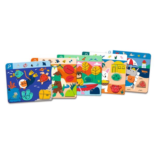 Un tout premier jeu de cherche-et-trouve… original, ludique et animé ! Grâce à ses 6 planches avec roues animées, chaque partie devient un véritable moment de découverte et de manipulation. Comme un véritable coucou-caché, les illustrations prennent vie sous vos doigts !
