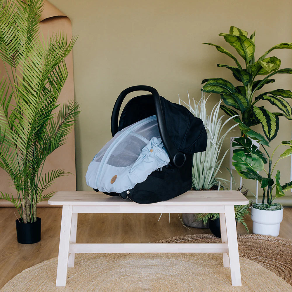 Parfaite pour protéger la peau de bébé lors des belles journées d'été. S'utilise en protection du soleil, des moustiques, de la pluie et du vent. Toujours détacher complètement la fermeture à glissière avant d'asseoir ou de retirer votre bébé du banc d'auto.